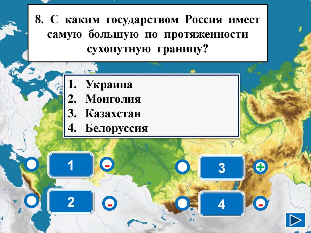 8. С каким государством Россия имеетсамую большую по протяженности