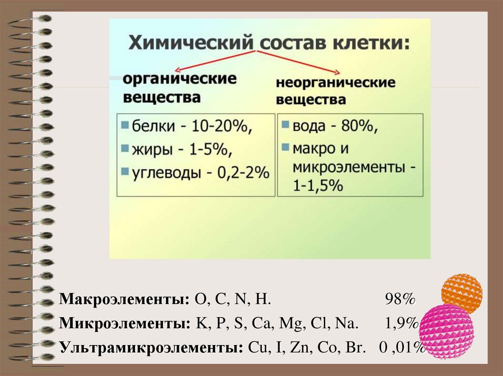 Микроэлементы: K, P, S, Ca, Mg, Cl, Na.