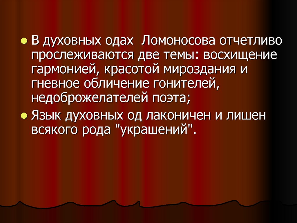 В духовных одах Ломоносова отчетливопрослеживаются две темы: восхищение