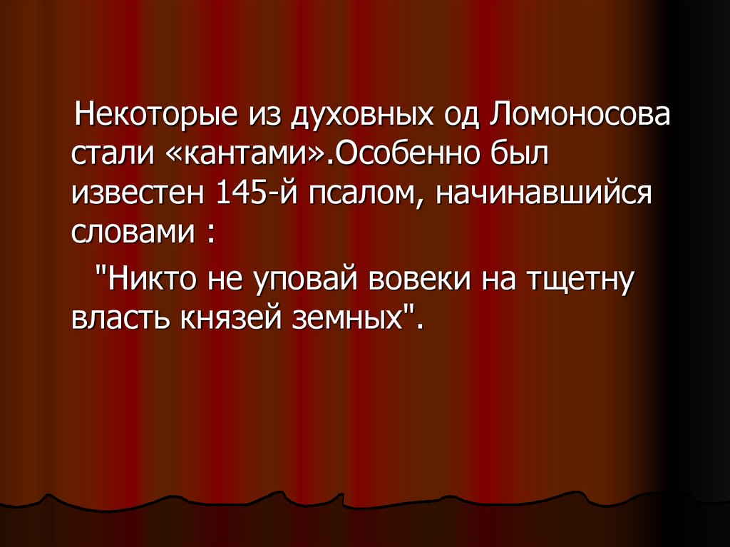 Некоторые из духовных од Ломоносовастали «кантами».Особенно был