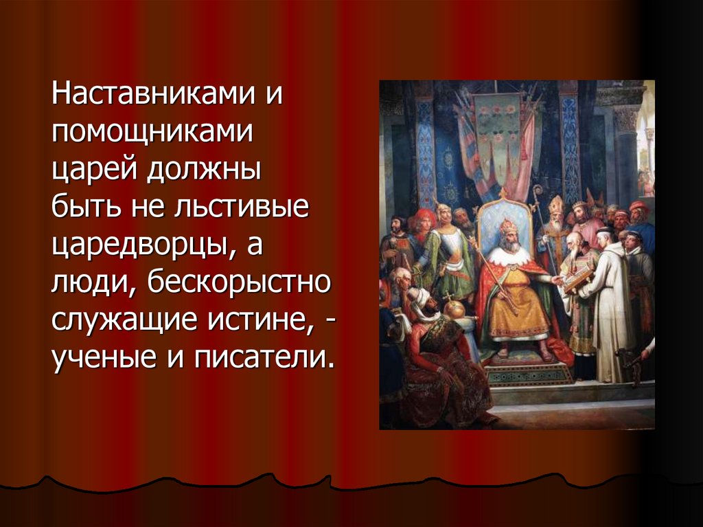 «Тогда божественны науки чрез горы, реки иморя в Россию простирали руки»;