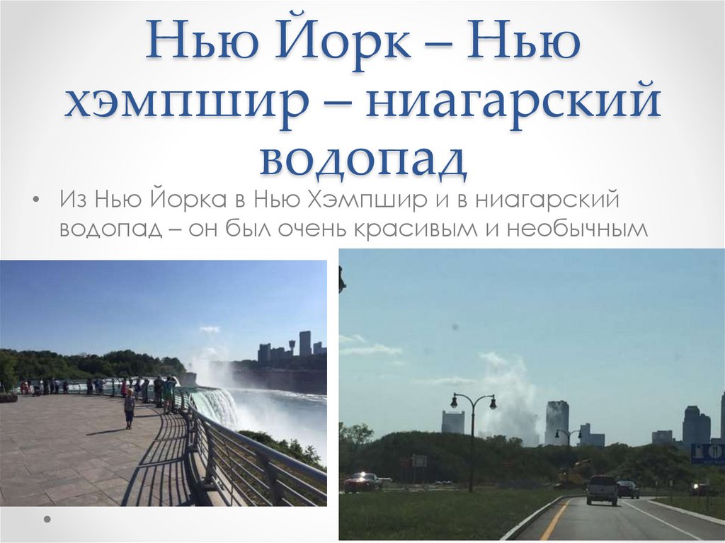 • Из Нью Йорка в Нью Хэмпшир и в ниагарский