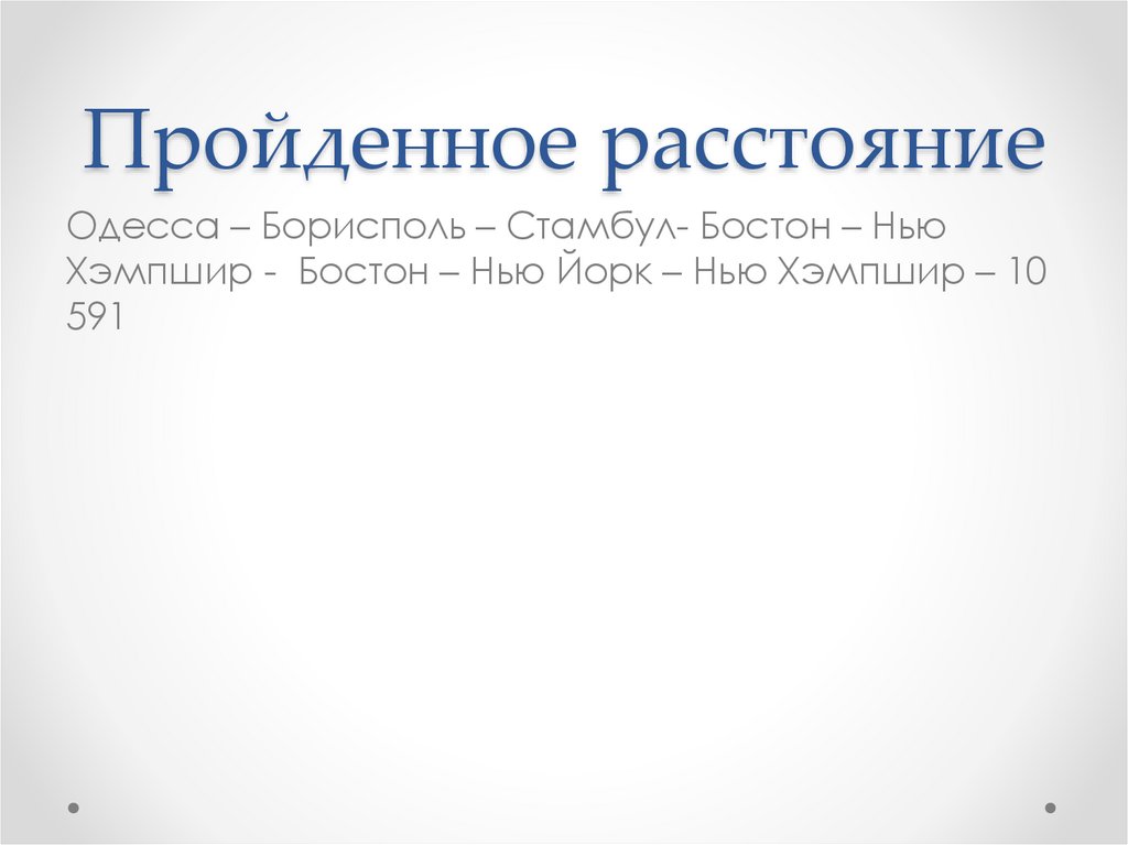 Пройденное расстояниеОдесса – Борисполь – Стамбул- Бостон – Нью