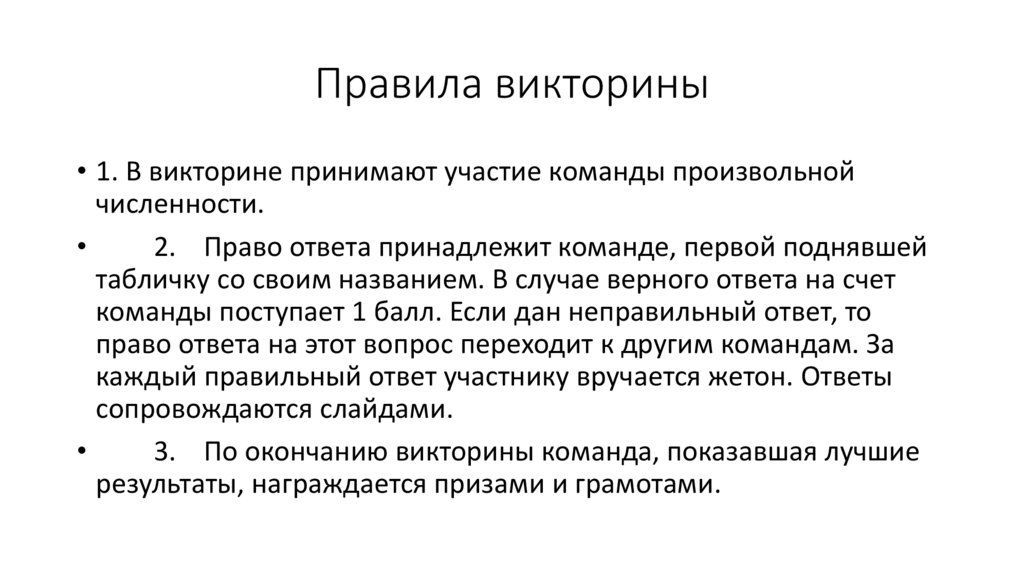 Правила викторины• 1. В викторине принимают участие команды произвольной