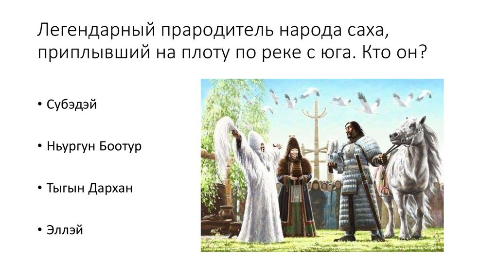 Легендарный прародитель народа саха,приплывший на плоту по реке с юга. Кто он?