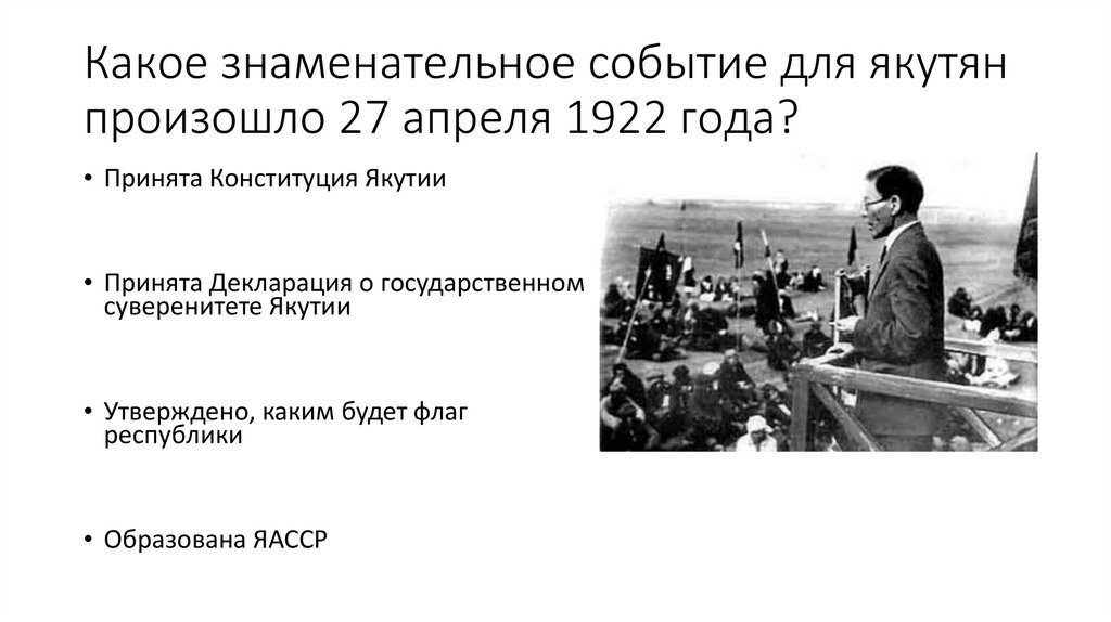 Какое знаменательное событие для якутянпроизошло 27 апреля 1922 года?