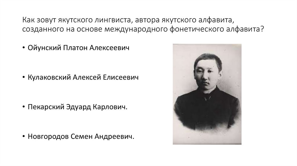 Как зовут якутского лингвиста, автора якутского алфавита,созданного на основе международного фонетического алфавита?
