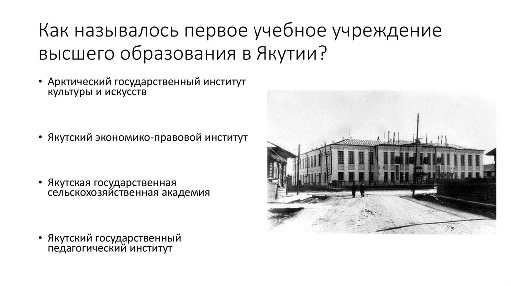 Как называлось первое учебное учреждениевысшего образования в Якутии?