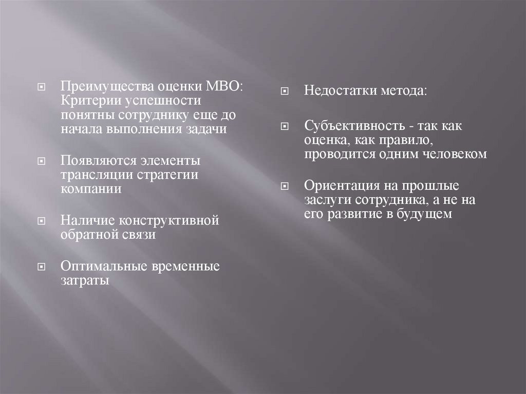 СУТЬ ДАННОГО ОЦЕНОЧНОГО МЕТОДА – ЭТО СОТРУДНИЧЕСТВОМЕНЕДЖЕРА И ПОДЧИНЕННОГО, А НЕ КОНТРОЛЬ