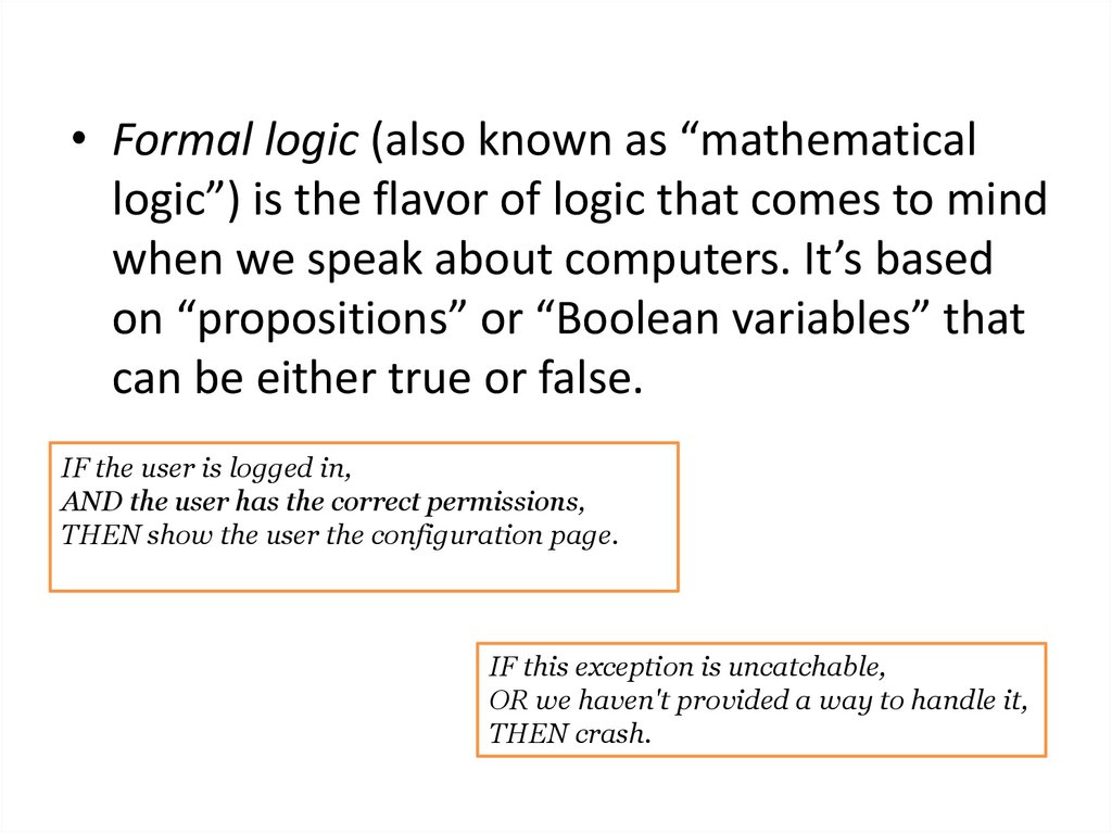 • Formal logic (also known as “mathematicallogic”) is the flavor of logic that comes to mind