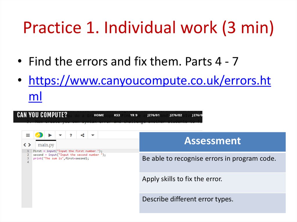 Practice 1. Individual work (3 min)• Find the errors and fix them. Parts 4 - 7
