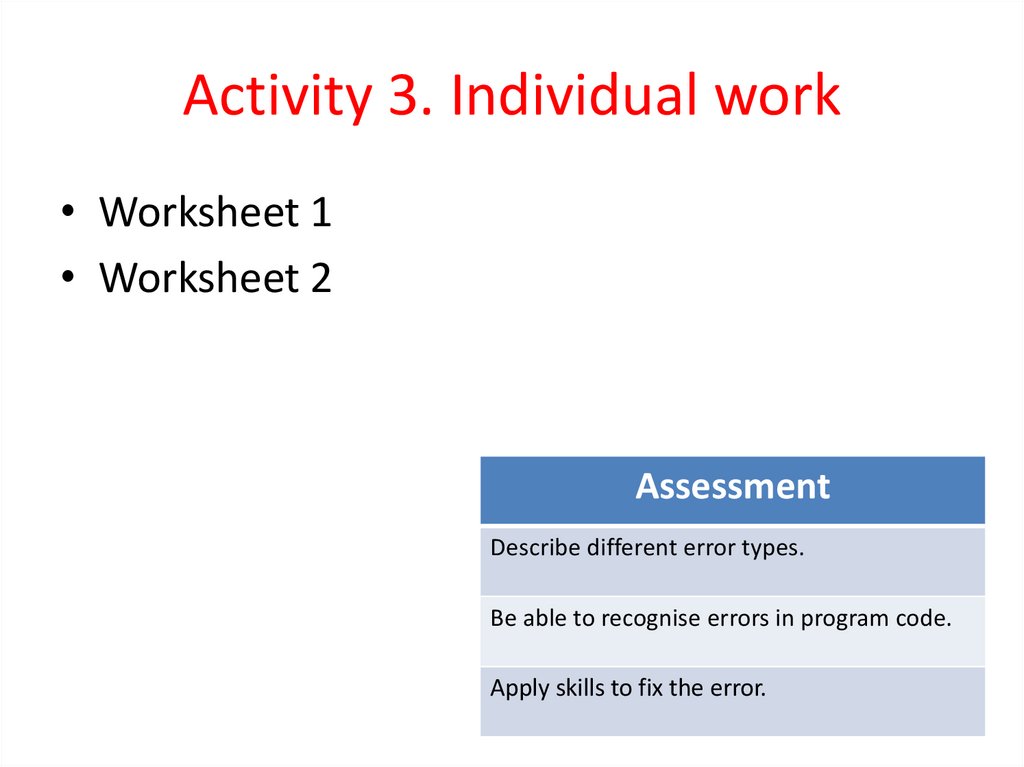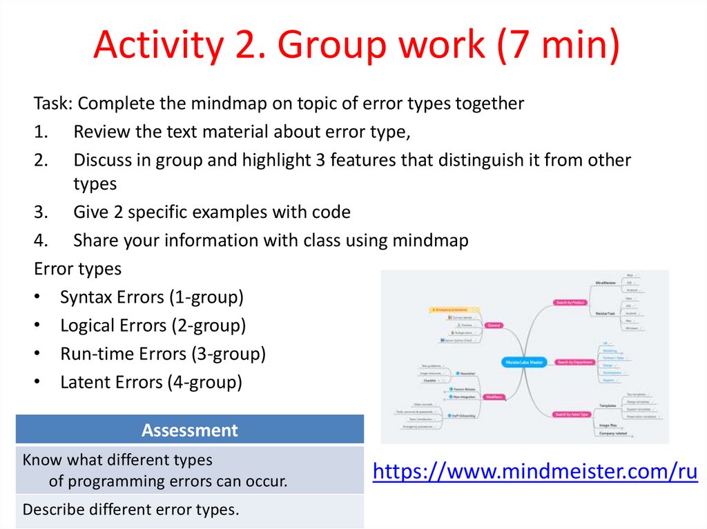 Activity 2. Group work (7 min)Task: Complete the mindmap on topic of error types together