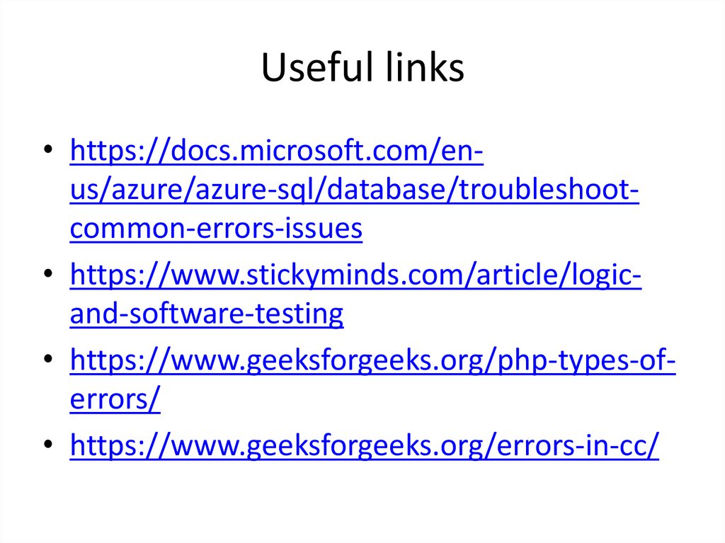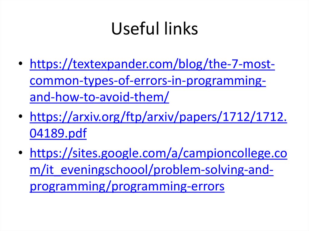 Useful links• https://textexpander.com/blog/the-7-mostcommon-types-of-errors-in-programmingand-how-to-avoid-them/