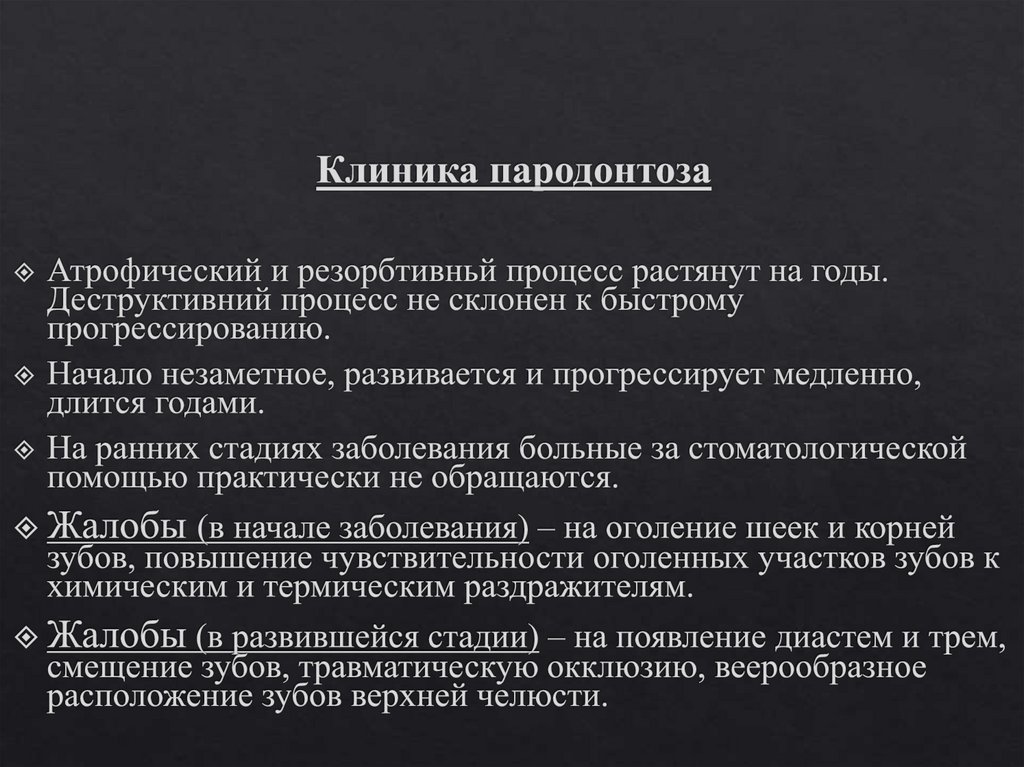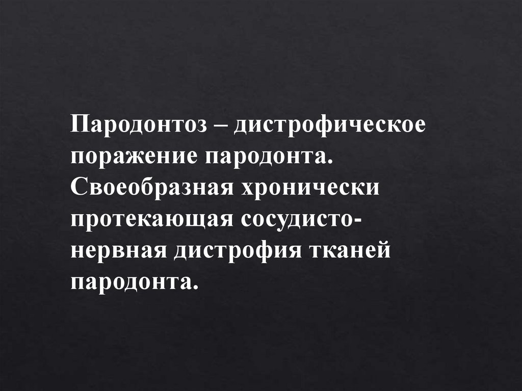 Пародонтоз – дистрофическоепоражение пародонта.