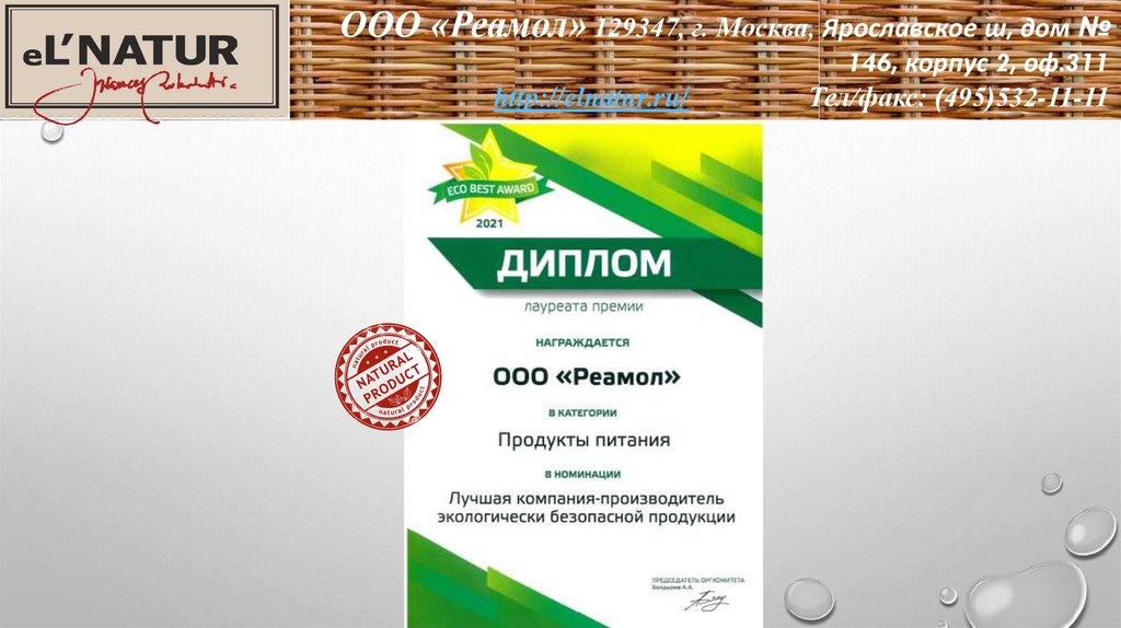 ООО «Реамол» 129347, г. Москва, Ярославское ш, дом №http://elnatur.ru/
