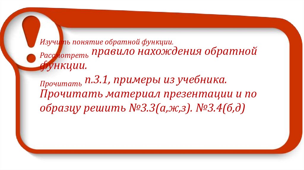 Изучить понятие обратной функции.Рассмотреть