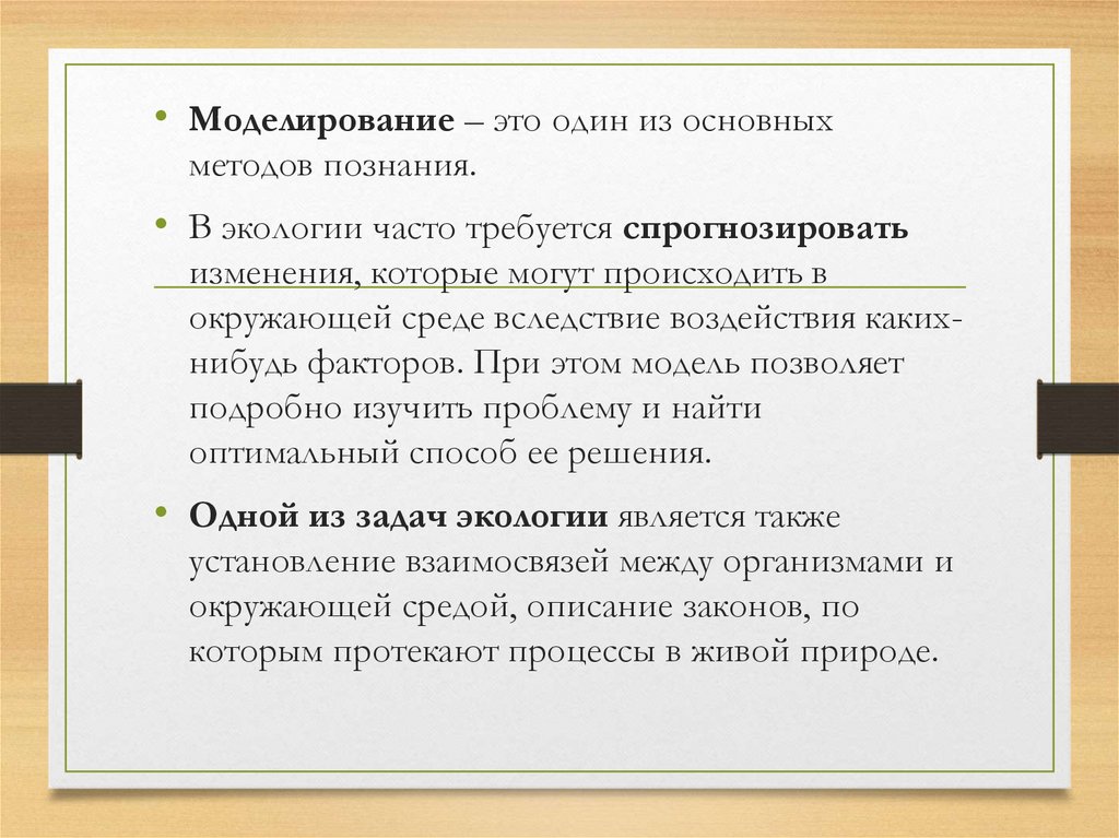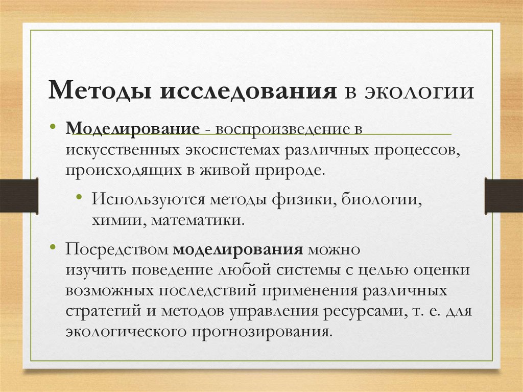Методы исследования в экологии• Моделирование - воспроизведение в