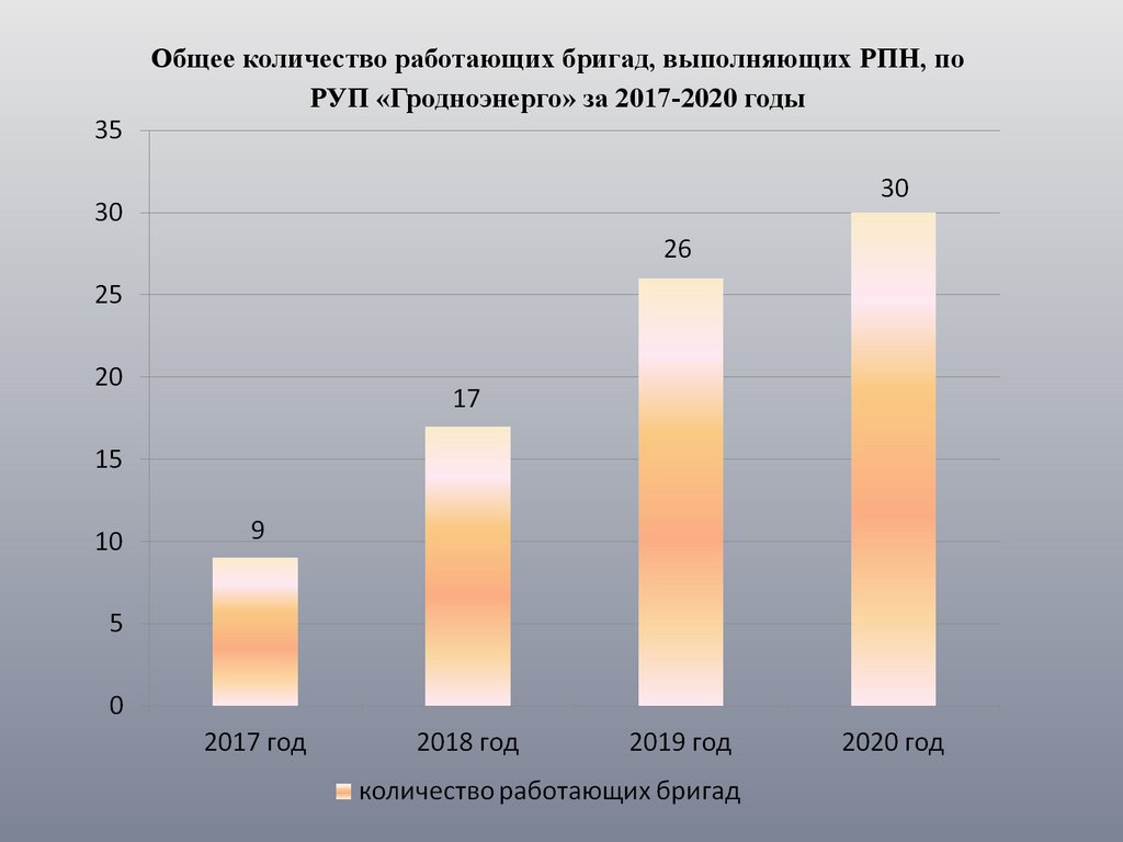 Общее количество работающих бригад, выполняющих РПН, поРУП «Гродноэнерго» за 2017-2020 годы