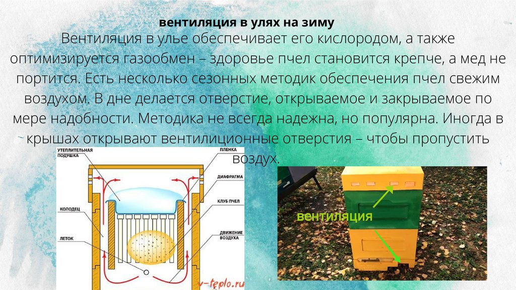вентиляция в улях на зимуВентиляция в улье обеспечивает его кислородом, а также