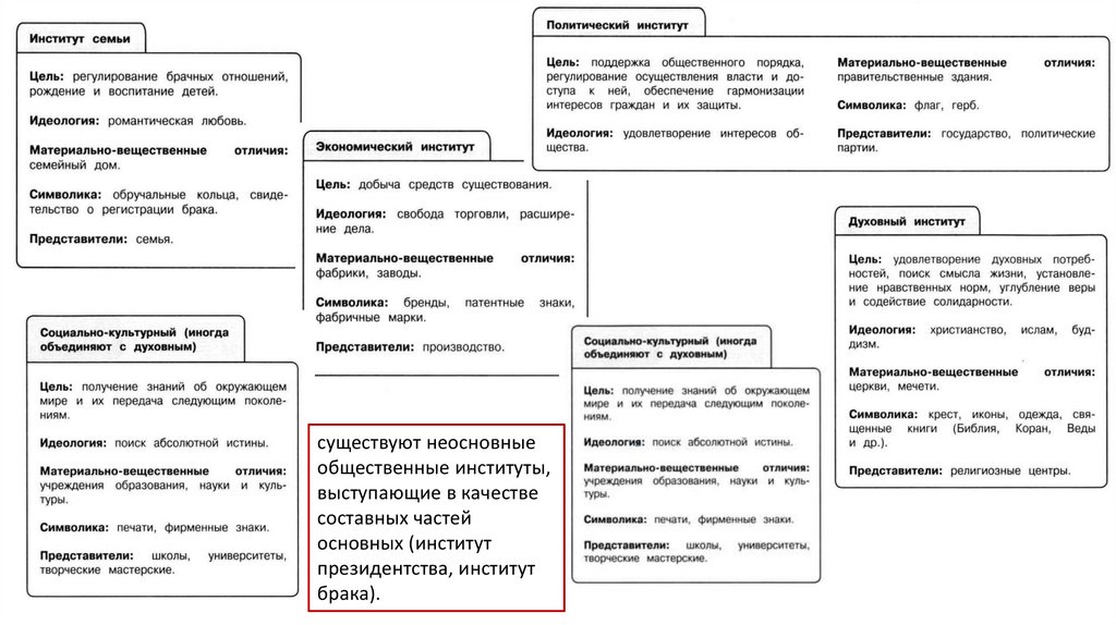 существуют неосновныеобщественные институты,