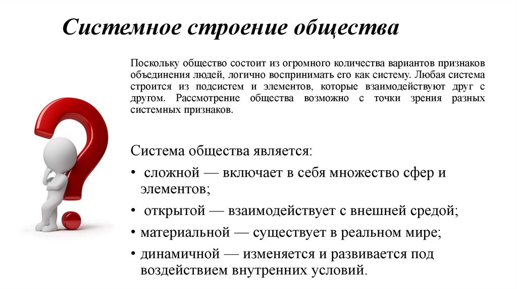 Системное строение обществаПоскольку общество состоит из огромного количества вариантов признаков