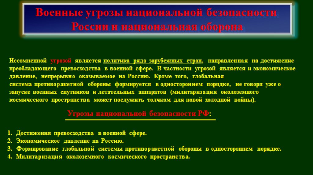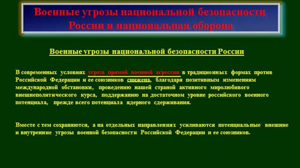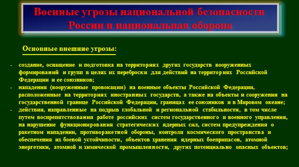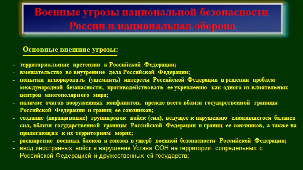 Военные угрозынациональной безопасности России
