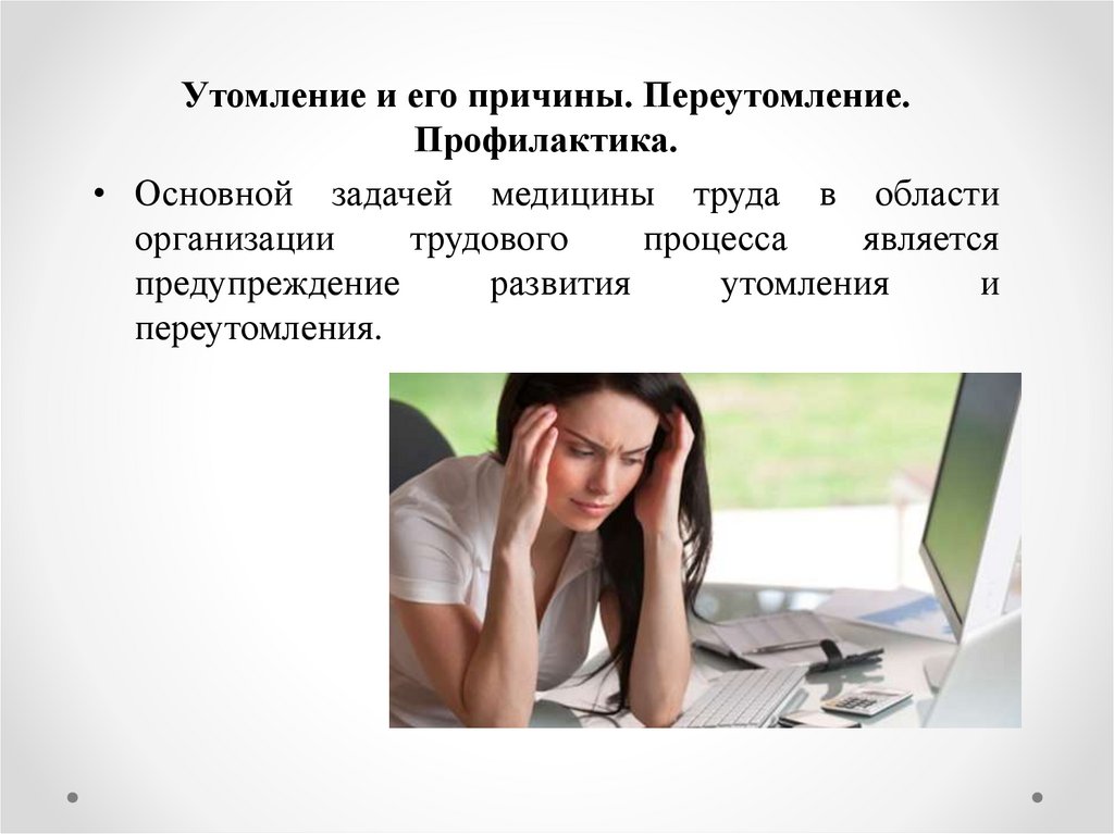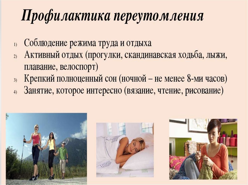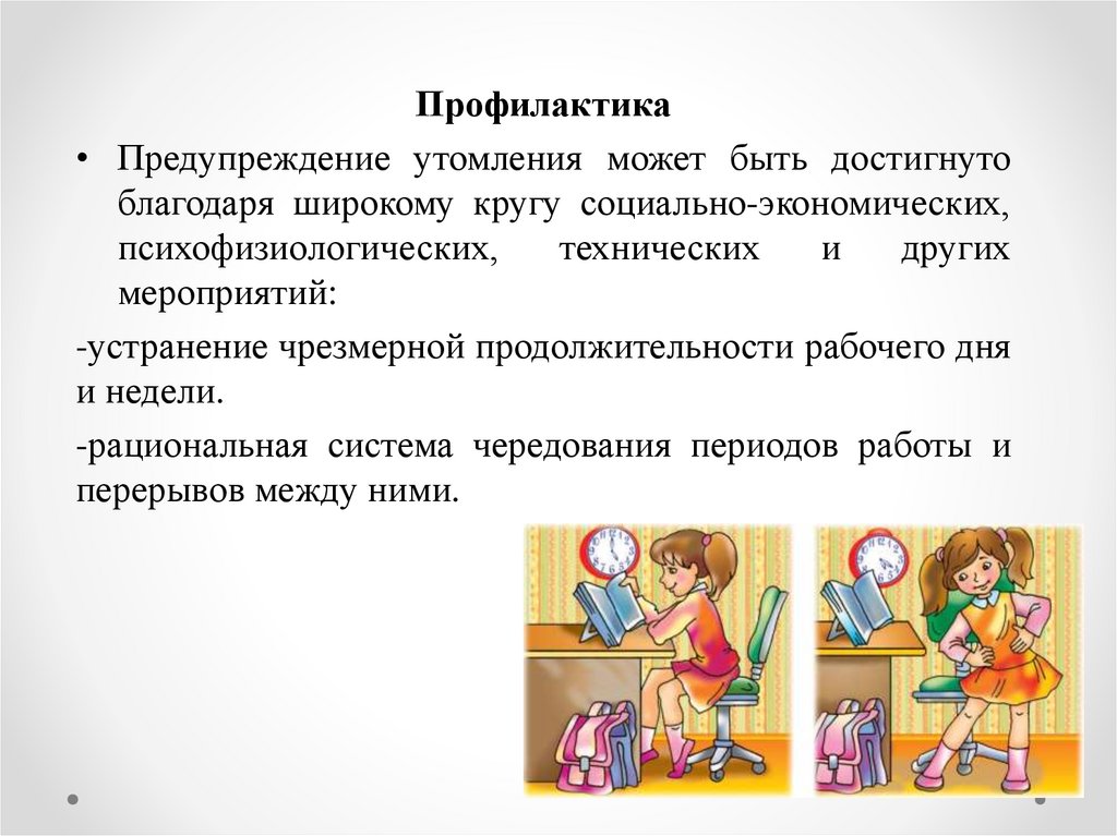 Профилактика• Предупреждение утомления может быть достигнуто