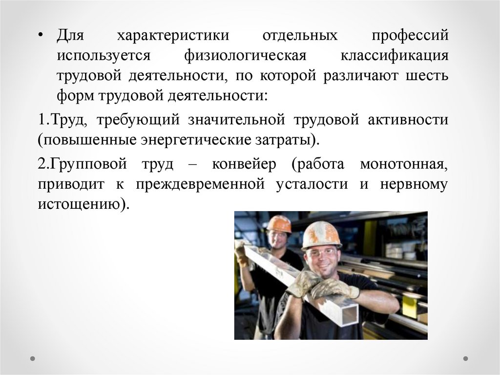 1.Труд, требующий значительной трудовой активности