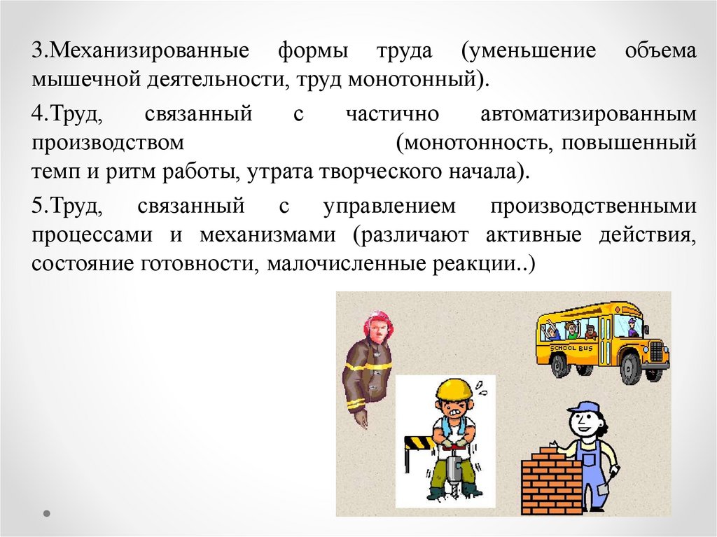 3.Механизированные формы труда (уменьшение объемамышечной деятельности, труд монотонный).