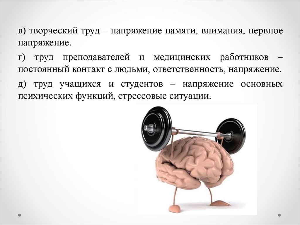 в) творческий труд – напряжение памяти, внимания, нервноенапряжение.