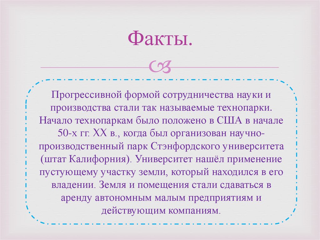 50-х гг. XX в., когда был организован научнопроизводственный парк Стэнфордского университета