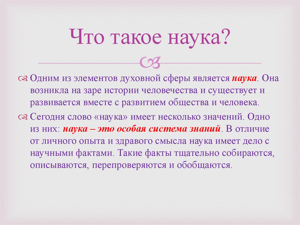 Что такое наука?Одним из элементов духовной сферы является наука. Она