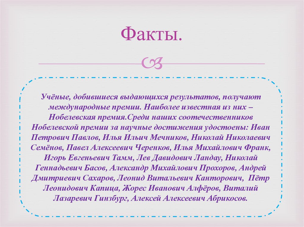 Факты.Учёные, добившиеся выдающихся результатов, получают
