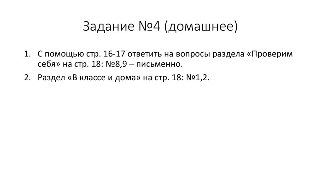 Задание №4 (домашнее)1. С помощью стр. 16-17 ответить на вопросы раздела «Проверим