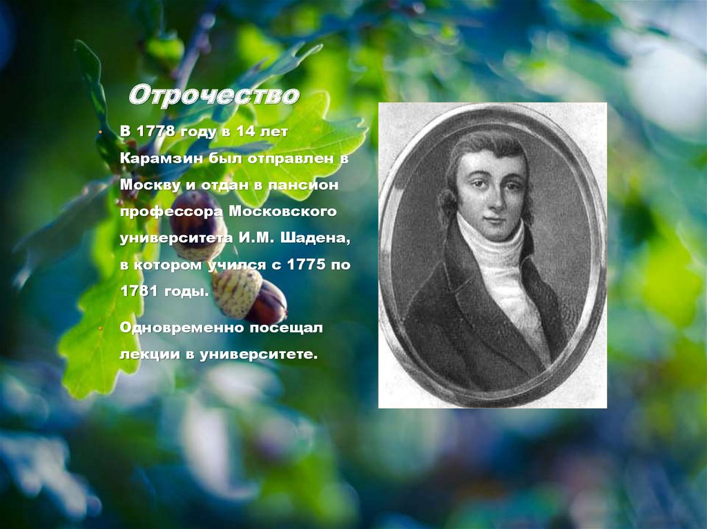 ОтрочествоВ 1778 году в 14 лет