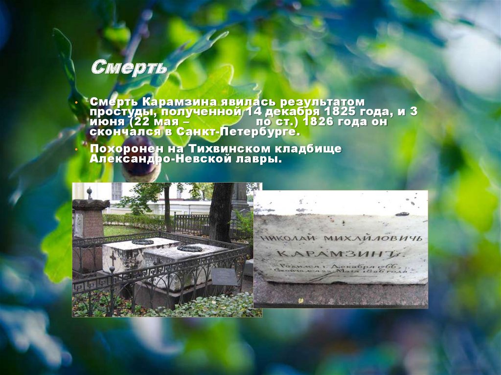 СмертьСмерть Карамзина явилась результатом