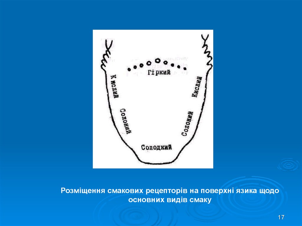 Розміщення смакових рецепторів на поверхні язика щодоосновних видів смаку