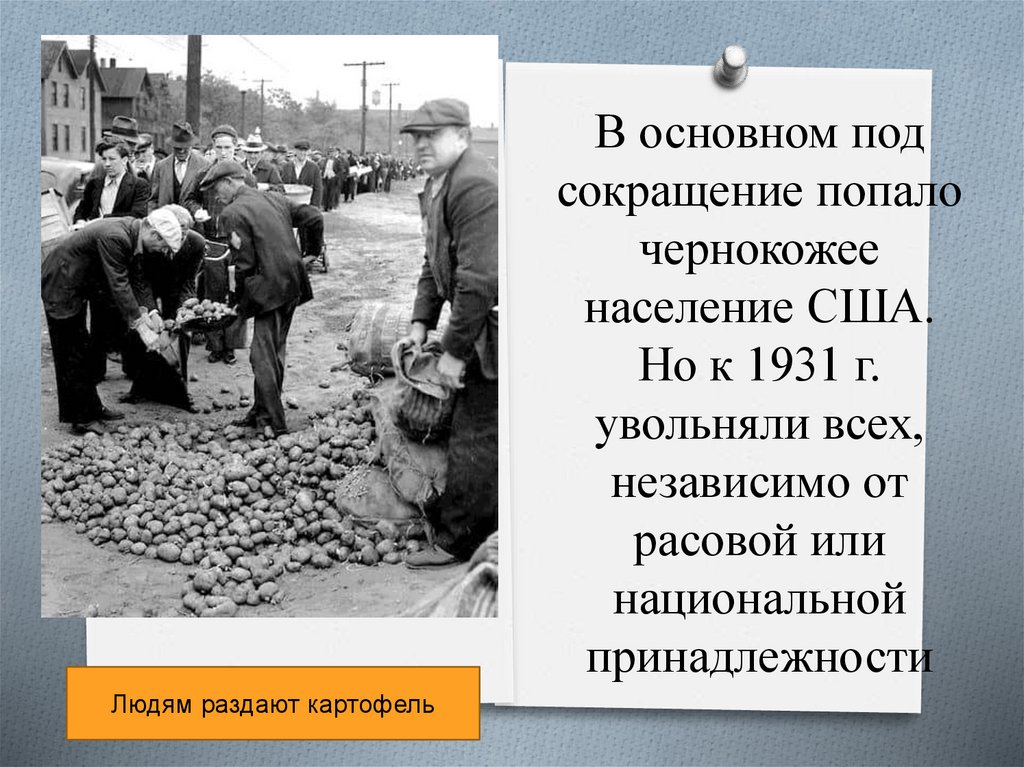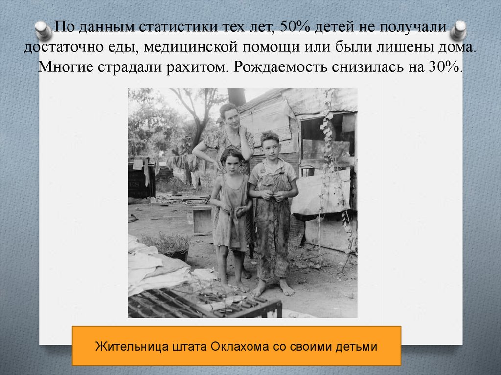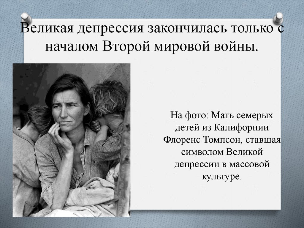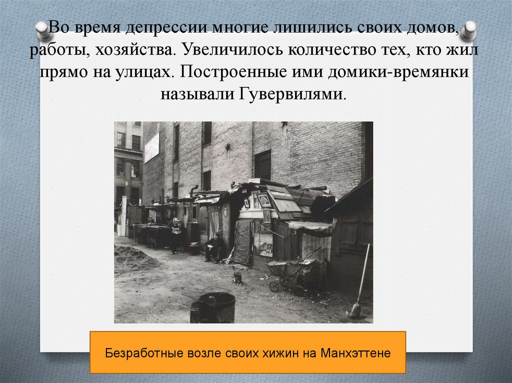 Во время депрессии многие лишились своих домов,работы, хозяйства. Увеличилось количество тех, кто жил