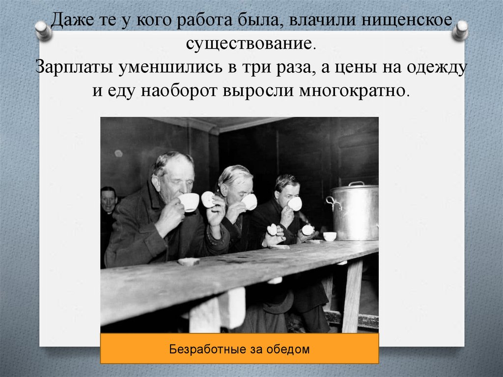 Даже те у кого работа была, влачили нищенскоесуществование.