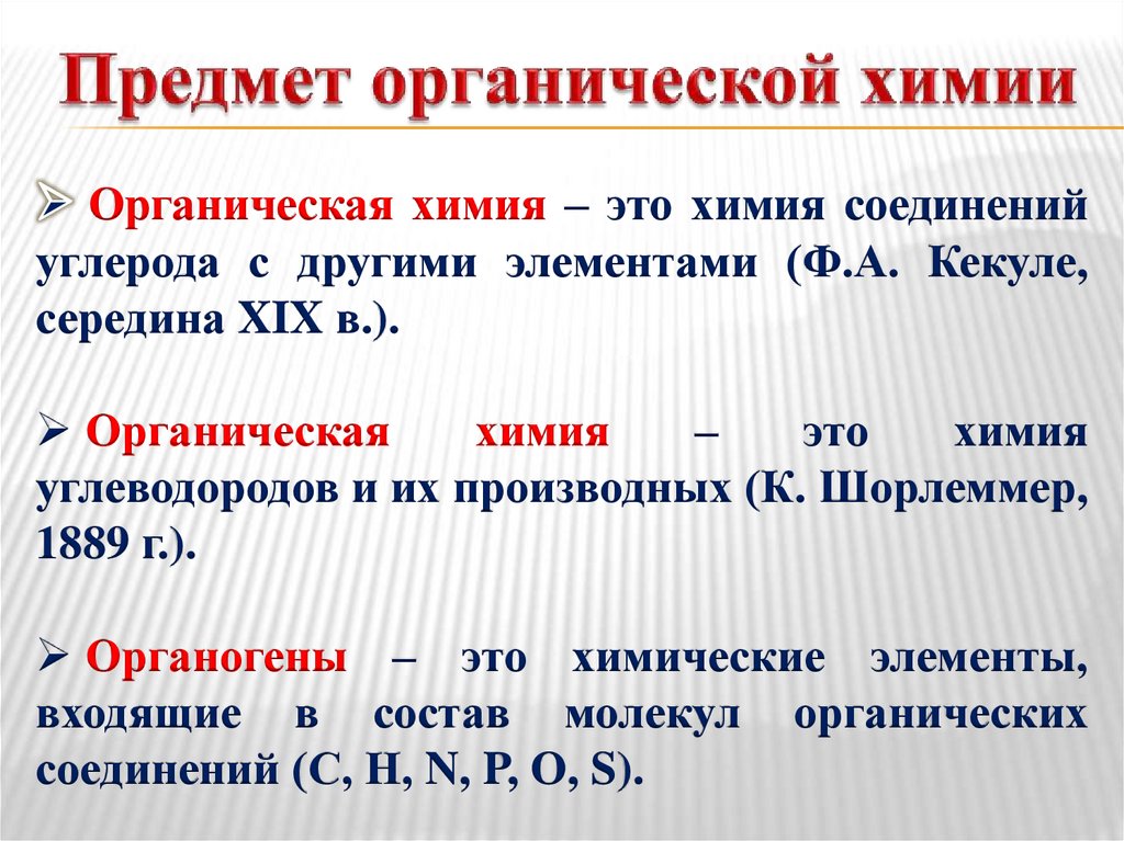 Органическая химия – это химия соединенийуглерода с другими элементами (Ф.А. Кекуле,