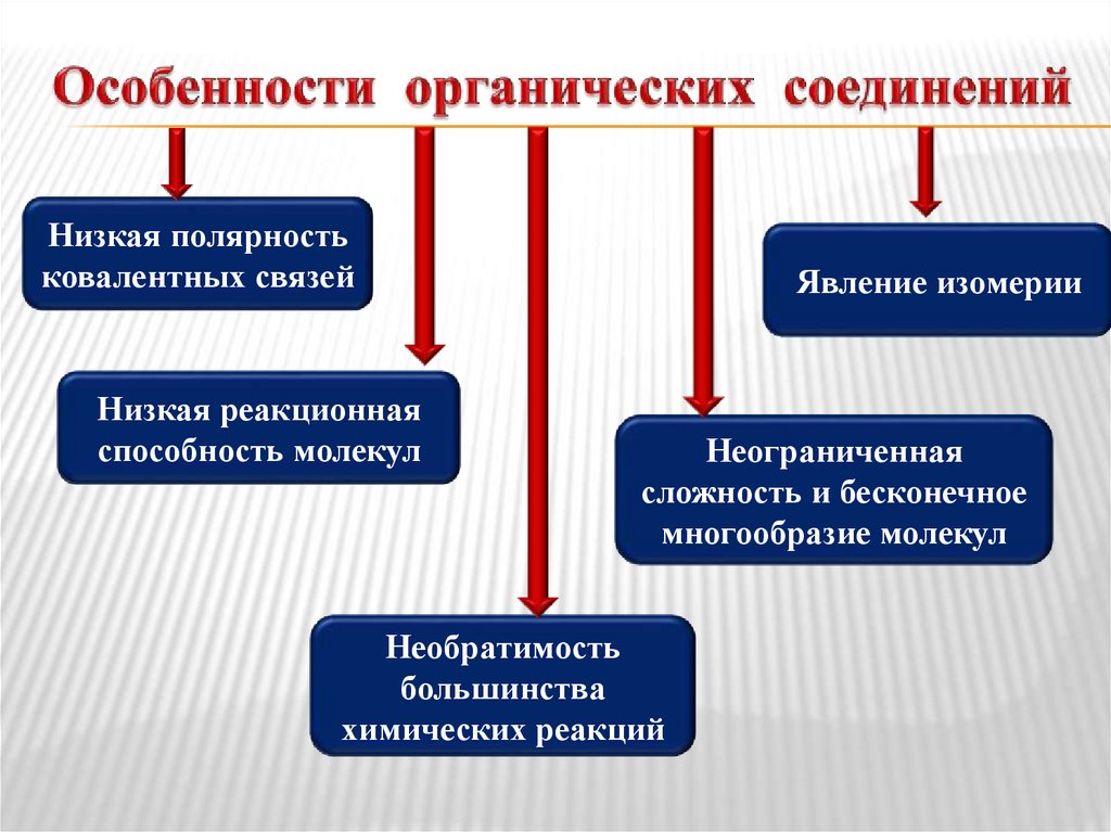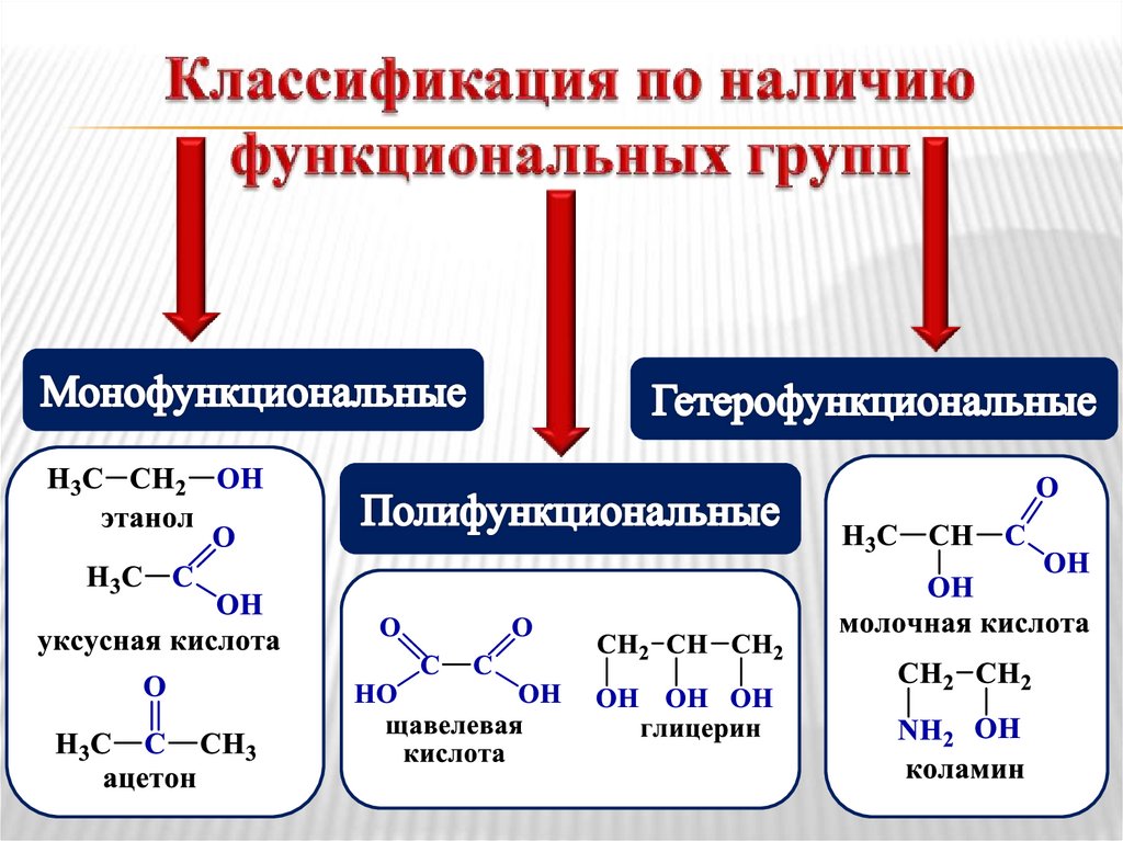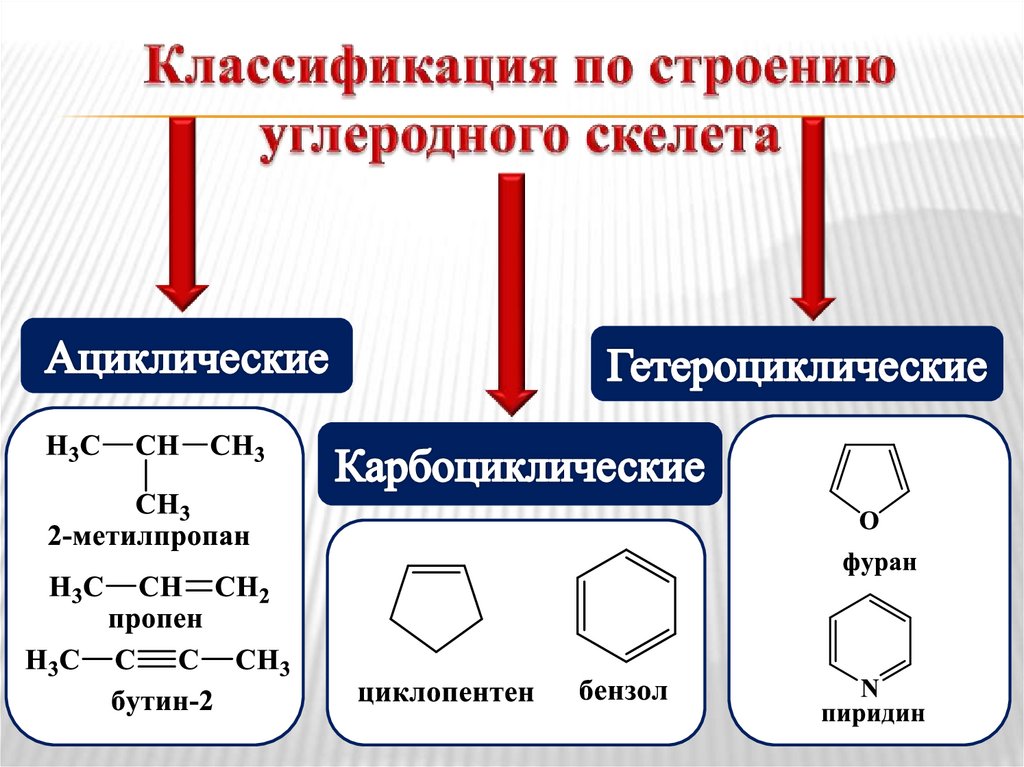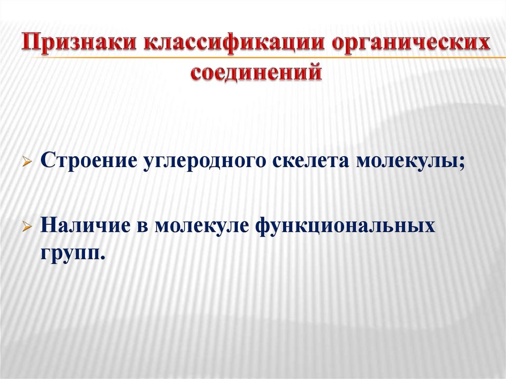 Строение углеродного скелета молекулы;Наличие в молекуле функциональных