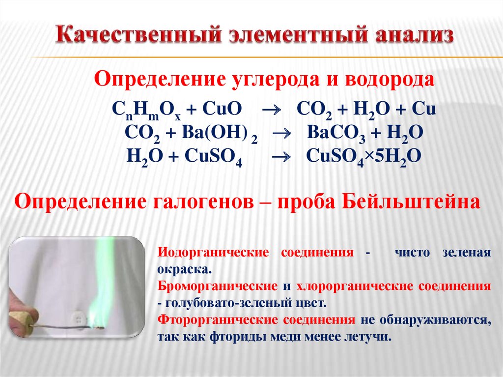 Определение углерода и водородаCnHmOх + CuO CO2 + H2O + Cu
