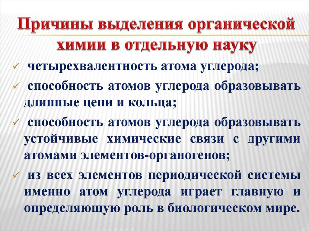 четырехвалентность атома углерода;способность атомов углерода образовывать