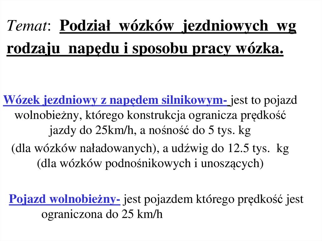 Temat: Podział wózków jezdniowych wgrodzaju napędu i sposobu pracy wózka.
