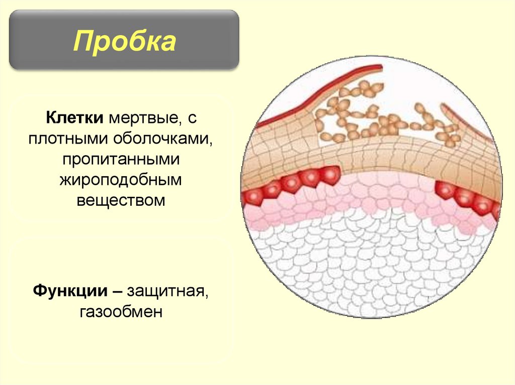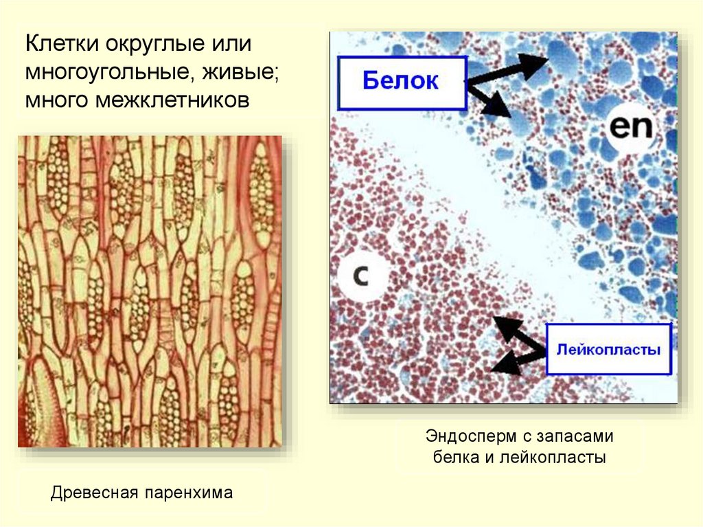 Клетки живые, тонкостенные, со всеми органоидами; часто с хлоропластами