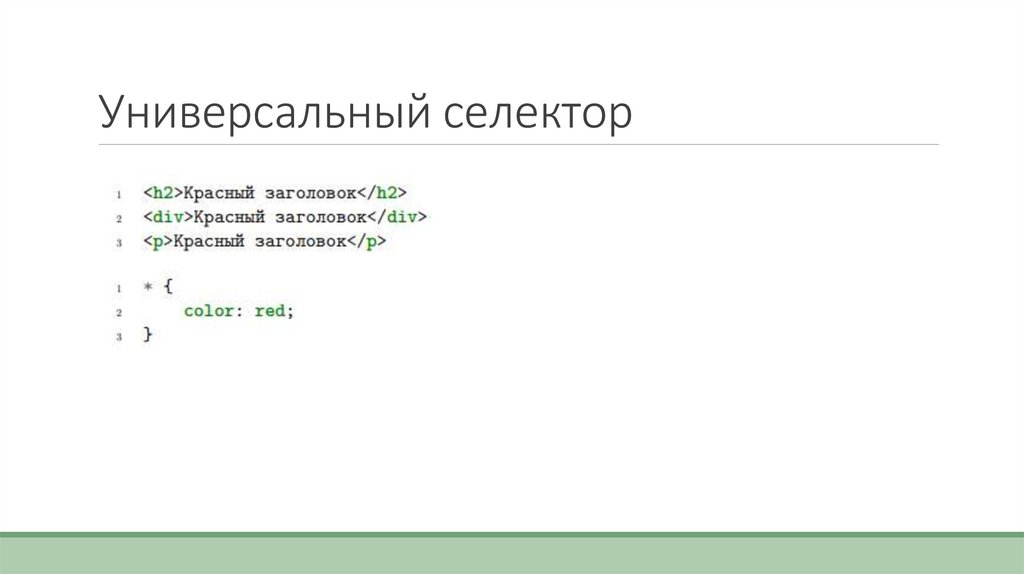 •Также можно комбинировать универсальный селектор с любым селектором, но такая