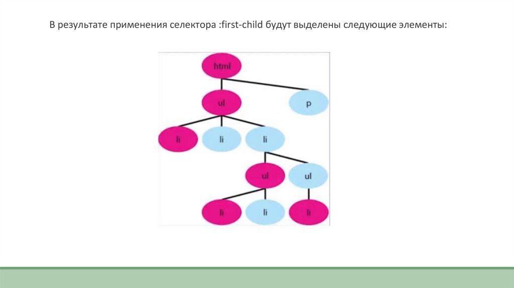 В результате применения селектора :first-child будут выделены следующие элементы:23.