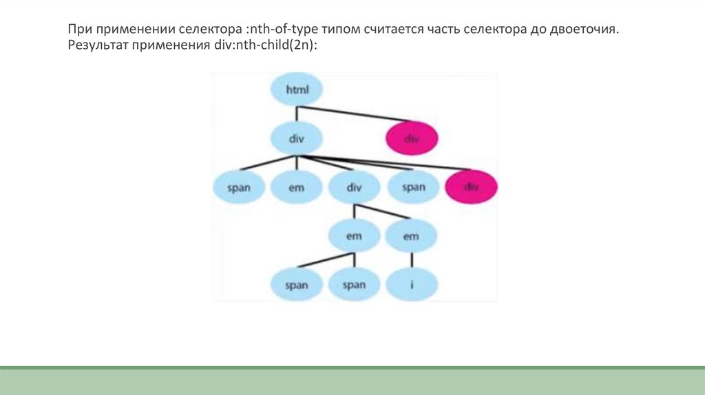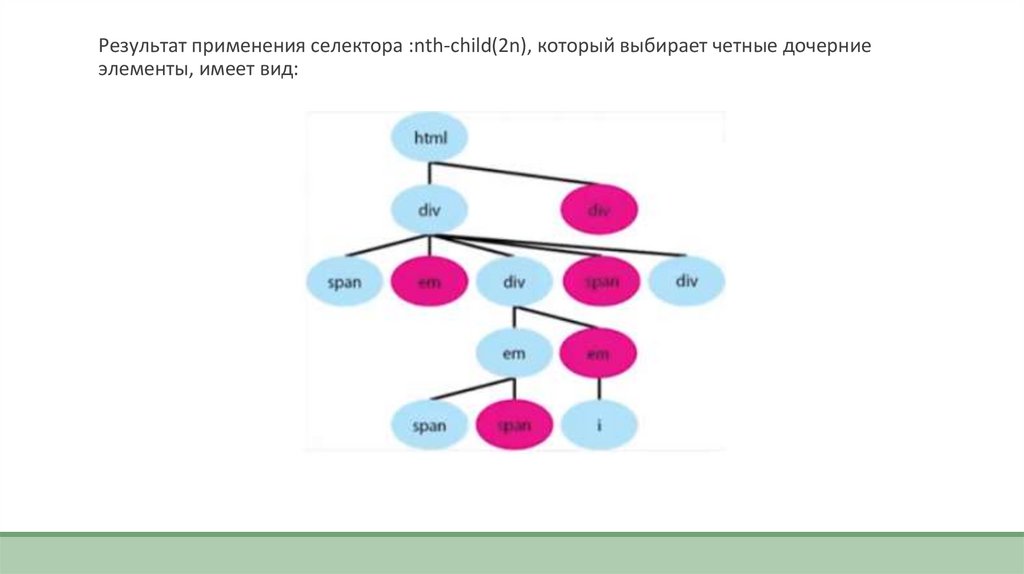 Результат применения селектора :nth-child(2n), который выбирает четные дочерниеэлементы, имеет вид: