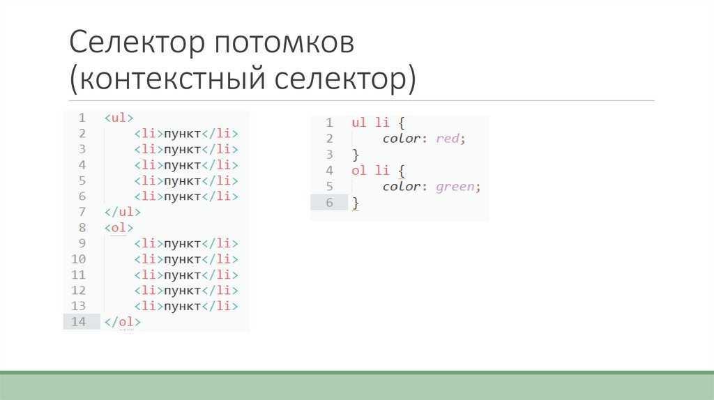 Селектор потомков(контекстный селектор)