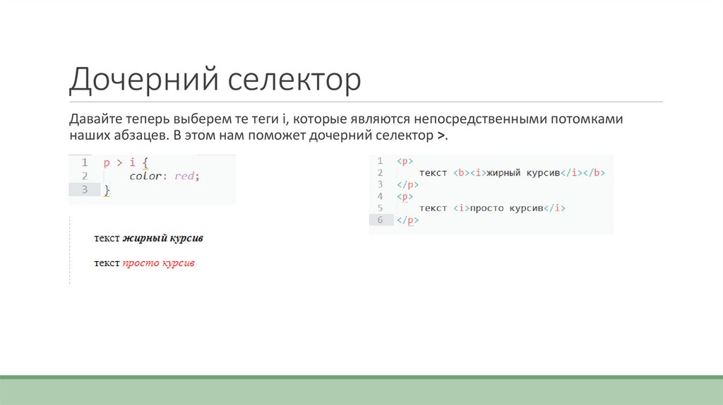 Дочерний селекторДавайте теперь выберем те теги i, которые являются непосредственными потомками